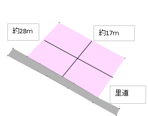 | 条件・その他 | 接道状況:里道 設備:近くの道路から引き込んだ上での本下水・水道 43条但し書き必要 | ||